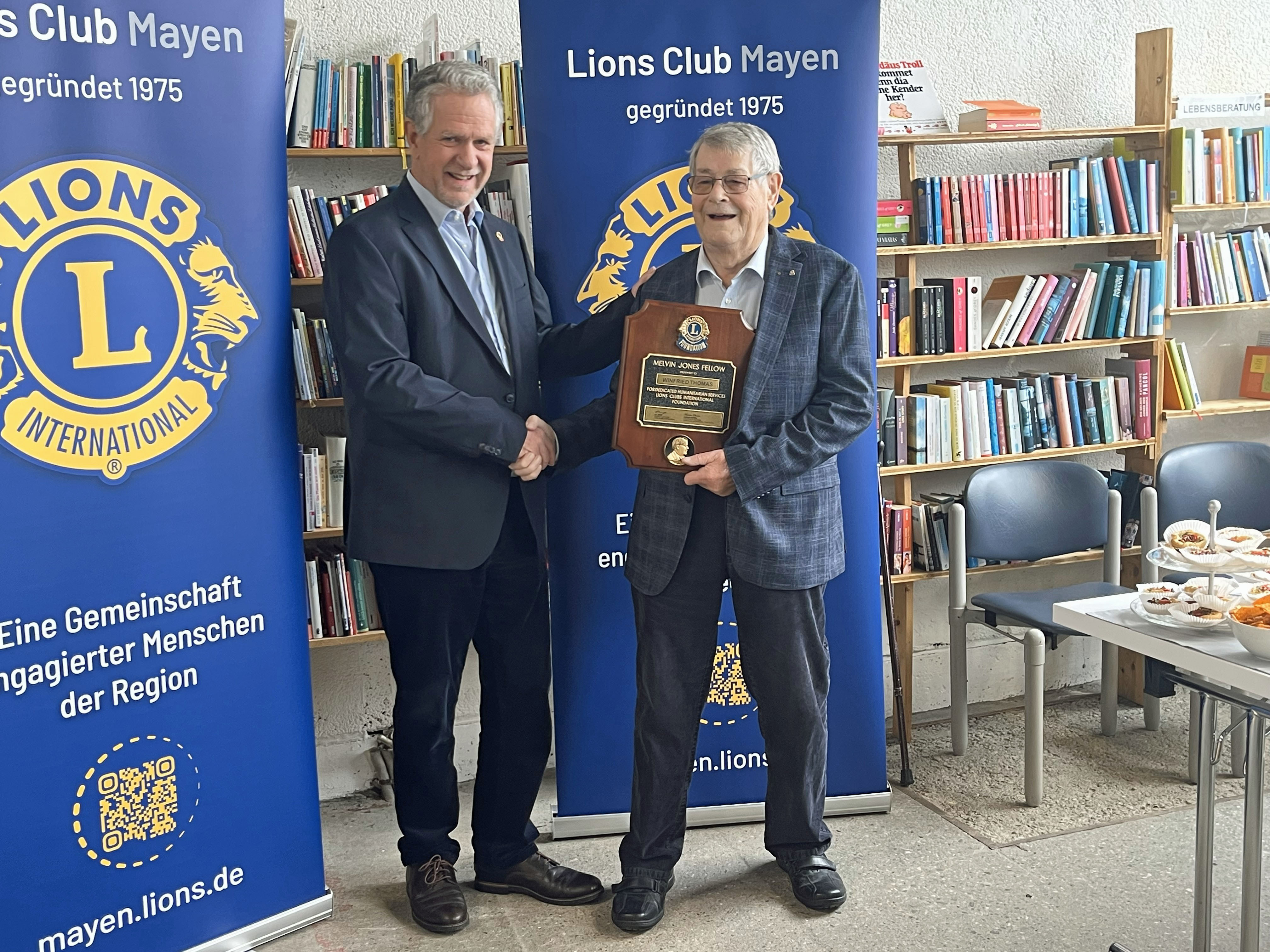 Winfried Thomas, Gründungsmitglied des 1975 gegründeten Lions Clubs Mayen, erhielt für seinen langjährigen Einsatz die höchste Auszeichnung der Lions, einen Melvin Jones Fellowship-Award.